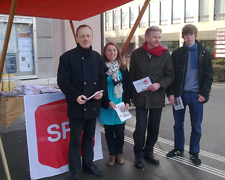 Vor dem Gemeindehaus diskutietren und informierten SP-Kantonsrats-Kandidierende.